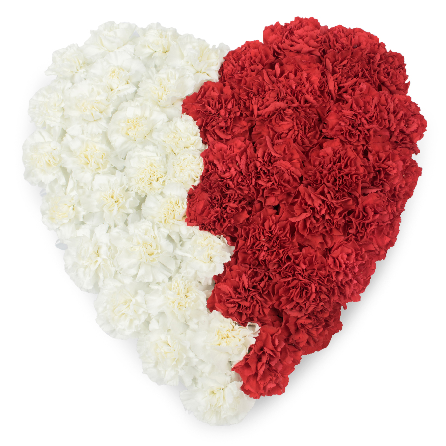 Experience the magic of our Luxury Carnation Bouquet, a stunning blend of white and red carnations meticulously arranged in a heart shape. Crafted by our skilled florists, this bouquet is a fusion of elegance and deep emotional connection.