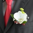 The groom buttonhole is the last, but not less important detail of the groom's look. With this so attractive bunch of white orchid, green mini chrysanthemums and gypsophila tight neatly with elegant red ribbon, every groom will make a good impression by showing good taste and elegance.