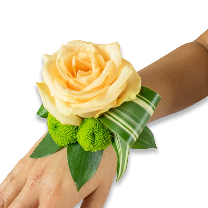 Bring a warm, radiant touch to your big day with the Sun Kissed Wedding Corsage from Florist Brent Cross. Featuring soft pale orange roses paired with fresh green chrysanthemums, this elegant corsage captures a natural, sunlit glow that flatters any bridal look. Perfect for brides, bridesmaids, mothers of the bride or groom, and special guests, each corsage is handcrafted by our skilled florists for a refined, premium finish.